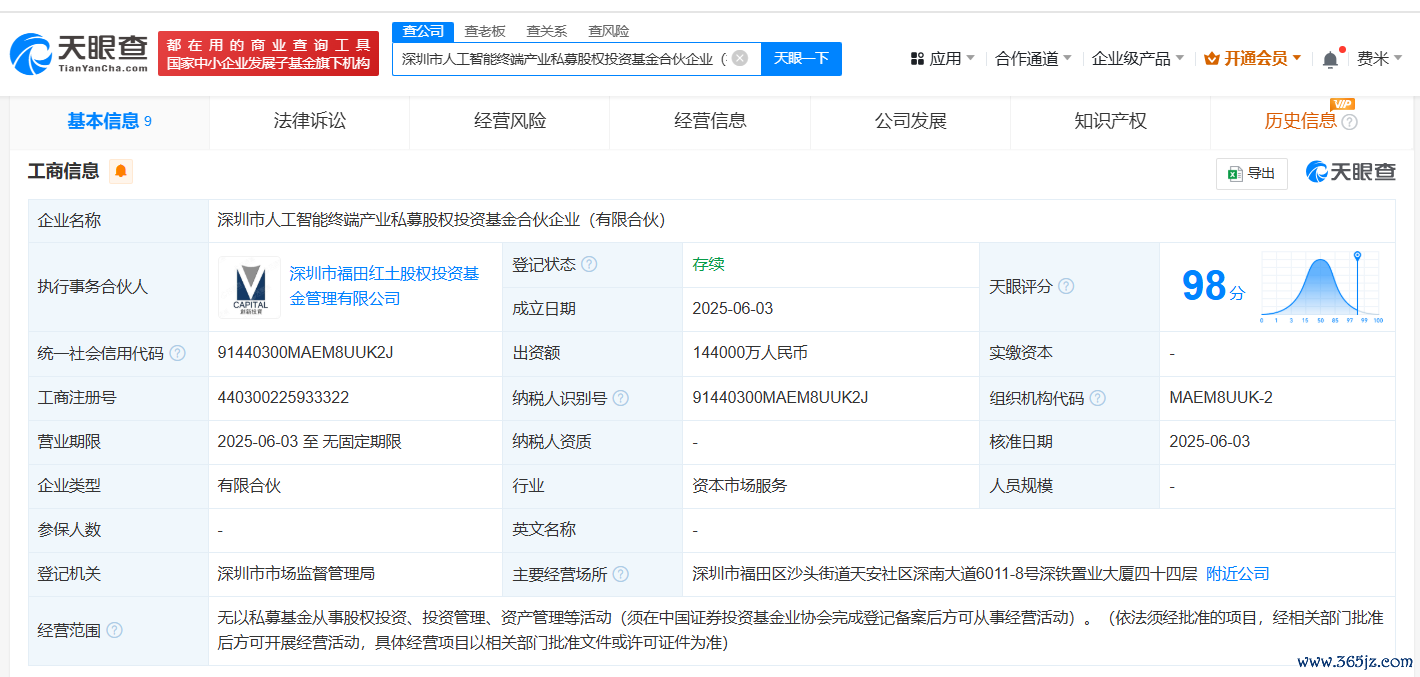 南方财经6月4日电华瑞优配,天眼查App显示,近日,深圳市人工智能终端产业私募股权投资基金合伙企业(有限合伙)成立,执行事务合伙人为深圳市福田红土股权投资基金管理有限公司,出资额14.4亿人民币,经营范围为以私募基金从事股权投资、投资管理、资产管理等活动。合伙人信息显示,该基金由深圳市引导基金投资有限公司、深圳市智慧城市产投私募基金管理有限公司、深圳市福田引导基金投资有限公司等共同出资。
