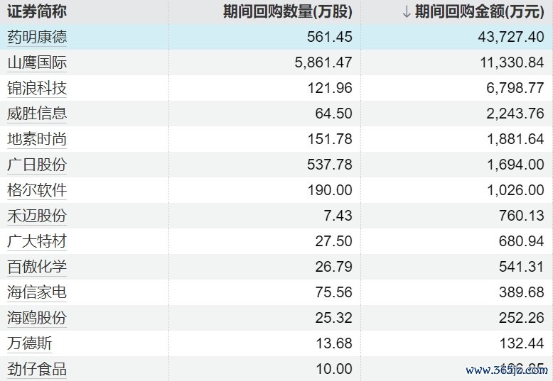 15家上市公司股票获回购,药明康德回购金额最高15家上市公司股票获回购,药明康德回购金额最高