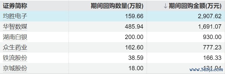 6家上市公司股票获回购,均胜电子回购金额最高6家上市公司股票获回购,均胜电子回购金额最高